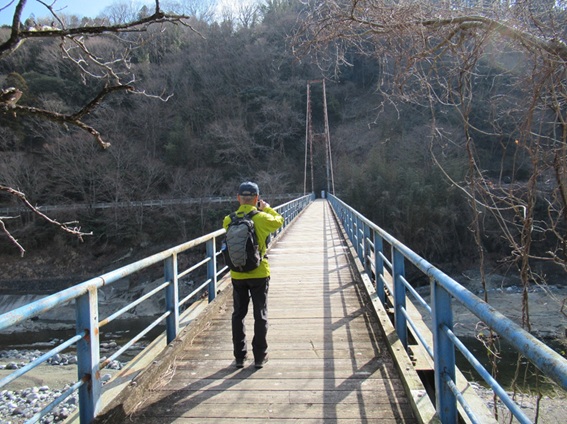 谷峨駅から右に行き、国道を越える橋を渡る。その先を下って酒匂川に架かる吊橋に向かう。吊橋の制限人数は10人だ。吊橋を渡り車道を左に行き、右側の急坂を登って行くと登山道入口に出る。
