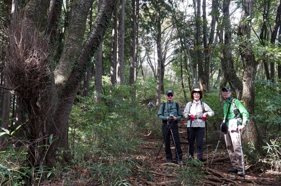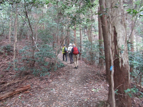 景信山から滑りやすい階段の道を下りると、後は比較的平坦な道が続く。展望があまりなく、チョット単調なのが少し残念だ。小さなピークがいくつかあるが、すべて巻道が有り、いくつか利用する。