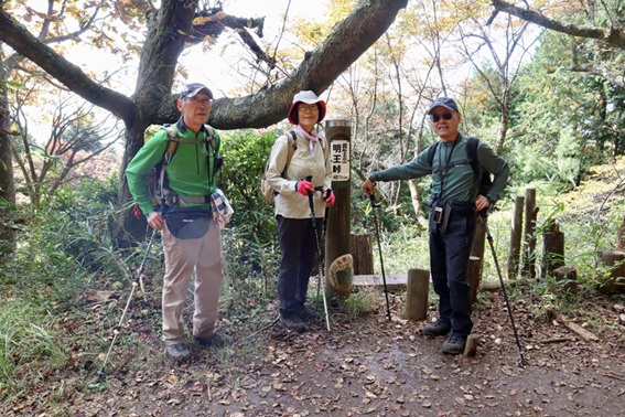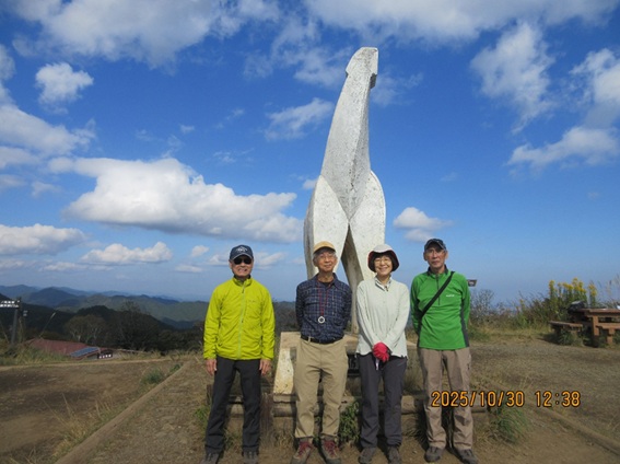 底沢峠、明王峠、奈良子峠を過ぎると陣馬山が近づいてくる。尾根沿いに高度を上げ紅葉を楽しみながら登って行くと、白馬像が目に入り、陣馬山頂上に出る。